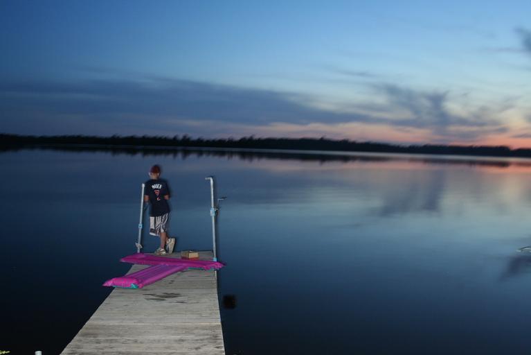 Keywords: boy pier evening lake dock water nature landscape summer peaceful wooden vacation calm sky blue tranquil outdoors clouds beautiful serene reflection sunset relaxation