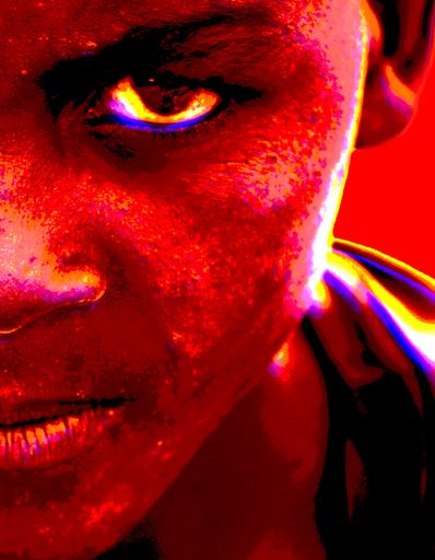 Keywords: boy portrait face angry look intense red