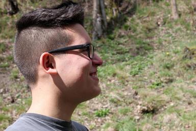 Keywords: boy profile young people man teenager human male glasses nature grass portrait young teen laugh smile happy friendly funny