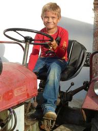 Keywords: boy tractor red agriculture commercial vehicle machine old