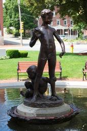 | Keywords: Boys and Turtles, front view - Fitchburg, Massachusetts - DSC08572.JPG In the center of a large granite basin stands a circular bronze sculpture depicting two nude boys One boy stands and the other crouches behind him Water sprays on the boys from the mouths of three large turtles located in the fountain basin Cire-perdue cast Brussels The fountain was a gift and presented to the City of Fitchburg on June 18 1889 by Rodney Wallace Henry A Willis and James Phillips Jr The fountain was restored in 1989 This artwork is in the public domain because it was first published before 1923 2013-06-14 14 39 52 own Daderot PD-1923 cc-zero Boys and Turtles Fitchburg Massachusetts Uploaded with UploadWizard |