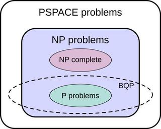 Keywords: BQP complexity class diagram.svg This svg shows the suspected shape of the BQP of problem space the range of problems easily solved by quantum computers Note that this is not proven; it has not been proved that P NP or P PSPACE and if either of these are equal the shape of BQP would be different Diagram based on information found in Michael Nielsen and Isaac Chuang 2000 <i>Quantum Computation and Quantum Information</i> Cambridge Cambridge University Press ISBN 0-521-63503-9 Based on Image Complexity classes svg by user Booyabazooka Also public domain Drawn by User Mike1024 Created with Inkscape 2007-02-15 User Mike1024 Computational complexity theory Computer science venn diagrams |