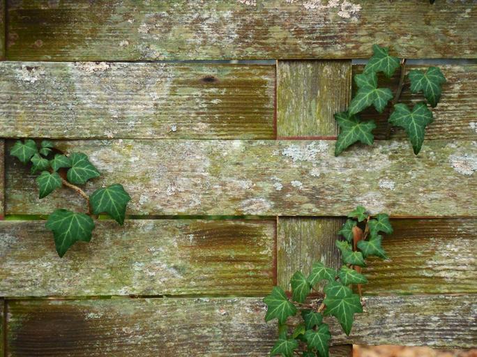 Keywords: braided fence background texture aged backdrop worn board decor distressed weathered fence grunge old panel plank wall retro romantic lichen wet damp vintage brown outdoor ivy creeping green leaves decorative