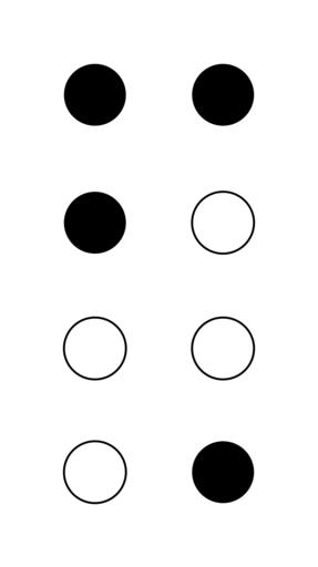 Keywords: Braille8 Dots-1428.svg 8 dot Braille letter/symbol Dots-1428 Unicode U+2887 Created by 3247 using braille8 pl Braille letters 8 dots Braille_10000111