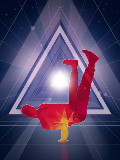 Keywords: brakedance break dance dancer street dancer street dance frieze posture rack balance silhouette life style style man guy boy hero super hero super man red man self confident young youth music futuristic fiction tunnel portal light in the tunnel cosmos star triangles cells sleek blue čeir čeir frieze desktop background