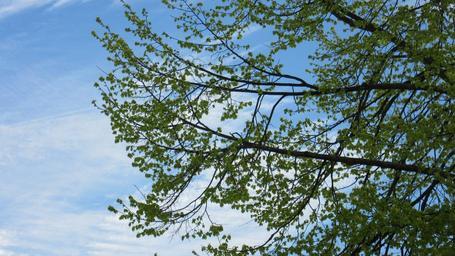 Keywords: branches leaves sky green spring frisch nature cheerful background