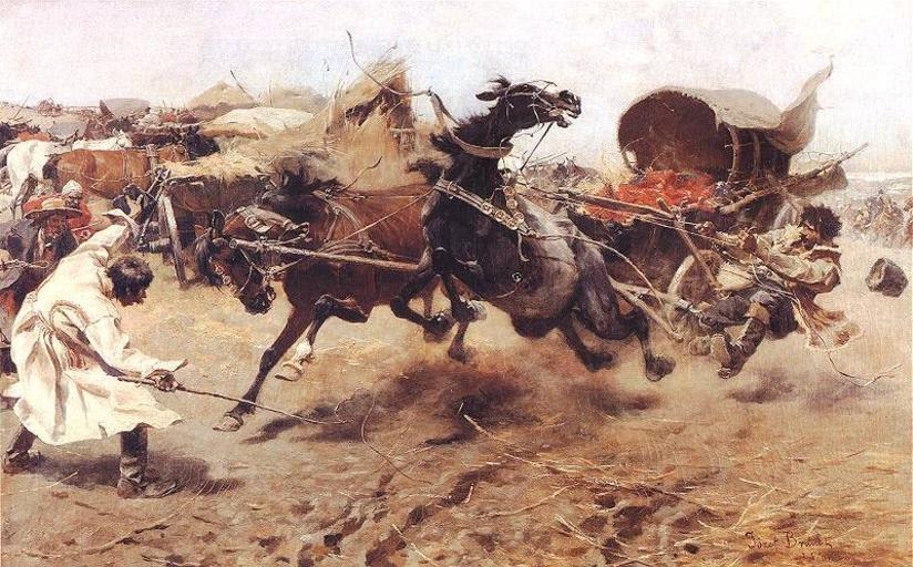 Keywords: Brandt Konie poniosly.jpg Horses bolted Konie poniosły oil canvas cm 65 110 5 Private collection Probably set in the late 17th century in Kresy http //www pinakoteka zascianek pl/Brandt/Images/Konie_poniosly jpg www pinakoteka zascianek pl ca 1885 Creator Józef Brandt Copyright expired PD-Art Other versions PD-old-100 Józef Brandt Kresy in art Paintings of horse driving Road accidents in art |