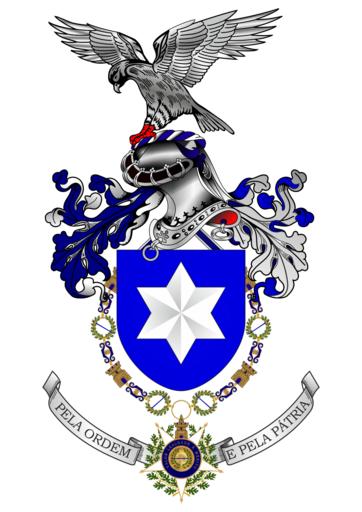 | Keywords: Brasão de Armas da Polícia de Segurança Pública.svg Ordenação das armas Escudo - de azul 1 estrela de 6 pontas de prata Elmo - de grades de prata forrado de púlpura a 3/4 a dextra Correias - de azul perfiladas de prata Paquife e viroI - de azul e de prata Timbre - 1 falcão esvoaçante de prata sancado de vermelho Condecoração - circundando o escudo o colar de grande-oficial da Ordem Militar da Torre e Espada do Valor Lealdade e Mérito Divisa - num listei de prata ondulado sotoposto ao escudo em letras de estilo elzevir maiúsculas de negro PELA ORDEM E PELA PÁTRIA trabalho próprio attribution required GFDL CC-BY 3 0 2014-03-24 PJPita Portaria n°225-82 de 19 de Fevereiro Other fields D / + > CoA Validity not estimable Coats of arms of the Police of Portugal Location not applicable Polícia de Segurança Pública |