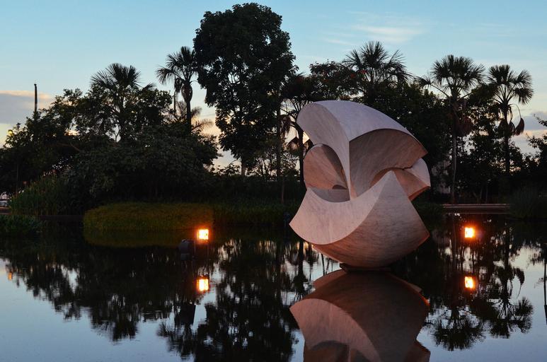 Keywords: brasilia lights trees eventide brazil lighting sky sunset illuminated reflection water itamaraty