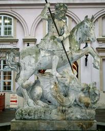 | Keywords: Bratislava Primacialny palac sv Juraj.jpg Svätý Juraj Na nádvorí Primaciálneho paláca Bratislave v strede fontány sa vypína súsošie svätého Juraja ako rytiera na koni ktorý bojuje s trojhlavým drakom Súsošie daroval v roku 1929 obchodník Rudolf Wahl mestu a bolo umiestnené na nádvorie Primaciálneho paláca mestskej radnice Prešporskí mešťania totiž každoročne v deň svätého Juraja 24 apríla volili nového richtára a členov mestských zastupiteľských orgánov own Pravdepodobne Juraj Lippay ml sculptor - cc-by-3 0 <br> Peter Zelizňák photo 2009-03-19 Zákon č 618/2003 Z z o autorskom práve Slovenskej republiky § 27 Použitie diela umiestneného na verejnom priestranstve cc-by-sa-3 0 GFDL FoP-Slovakia Statue of Saint George and the Dragon in Primate's Palace Bratislava Images by Peter Zeliznak |