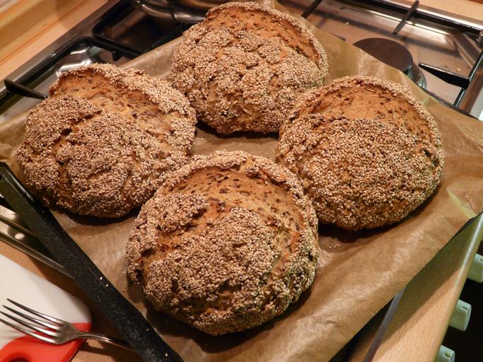 Keywords: bread baked even baked crispy frisch homemade sesame loaf
