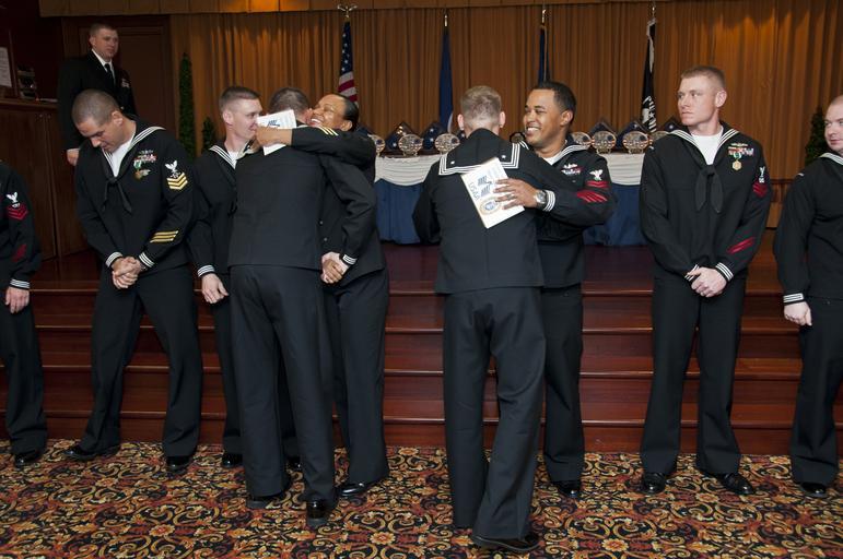 | Keywords: Breakfast announcement ceremony 130307-N-WI365-123.jpg  en Operations Specialist 1st Class Jermaine L Moore assigned to the Afloat Training Group and Navy Counselor 1st Class Erika C Rogers assigned to the amphibious dock landing ship USS Oak Hill are congratulated by fellow Sea and Shore Sailor of the Year nominees after the breakfast announcement ceremony at the Carl Brashear Conference Center at Joint Expeditionary Base Little Creek-Fort Story 2013-03-07 LSD 51 https //www dvidshub net/image/884146 130307-N-WI365-123 2013-03-11 20 54 VIRGINIA BEACH VA US PD-USGov-Military-Navy Joint Expeditionary Base Little Creek-Fort Story Images from DoD uploaded by Fæ |