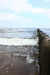 Keywords: breakwater seashore beach sea landscape the horizon seascape water sky clouds blue blue sky the waves the coast tide moss