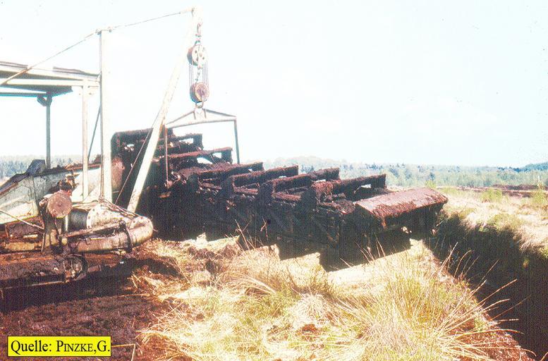 Keywords: Breesen3.jpg Torfgewinnung in West-Mecklenburg hochgezogene Eimerkette der Torfbaggers Typ žLiliput self-photographed Dr Günter Pinzke 1987 Cc-zero Landkreis Nordwestmecklenburg Peat cutting in Germany Peat cutting machines