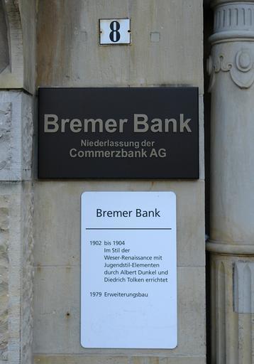 Keywords: BremerBank-Detail-2.jpg Bremer Bank historischer Teil Domshof 8 Neues Firmenschild own 2010-09 Jürgen Howaldt File BremerBank-Detail-2a jpg 53 4 33 N 8 48 34 5 E type landmark_region DE-HB_scale 1000_dim 50 Bremer Bank building in Bremen