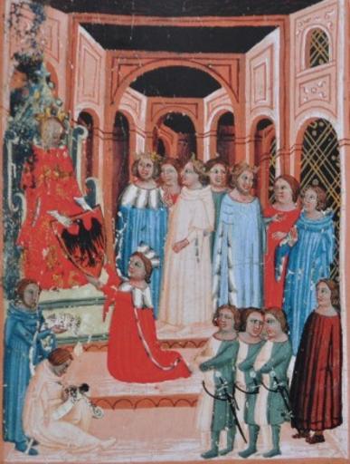 Keywords: Bretislav získává štít s orlicí.jpg cs Břetislav získává od císaře štít s orlicí Dalimil chronik author century 14 PD-Art Chronik Dalimil Bretislaus I of Bohemia in miniature
