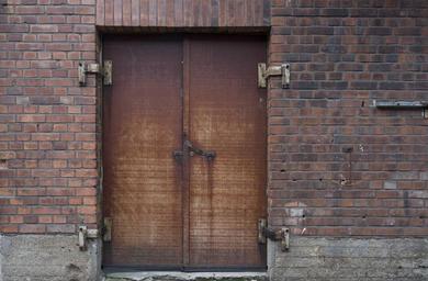 Keywords: brick door rust factory industrial wall