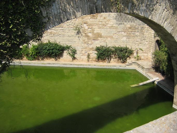 Keywords: bridge arc tub stone wall green water spain mallorca