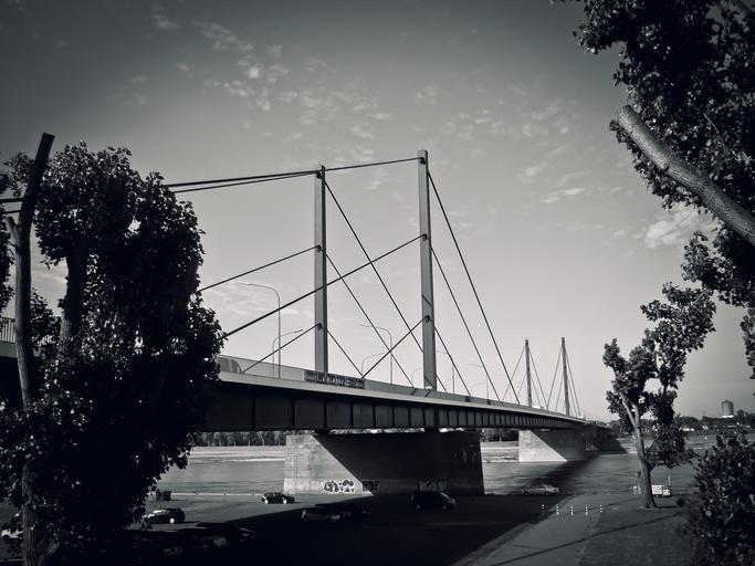Keywords: bridge architecture road bridge rhine düsseldorf black white theodor-heuss bridge city view