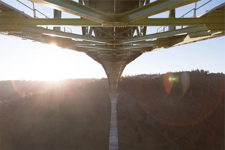 Keywords: bridge architecture sun rays sunshine mountain