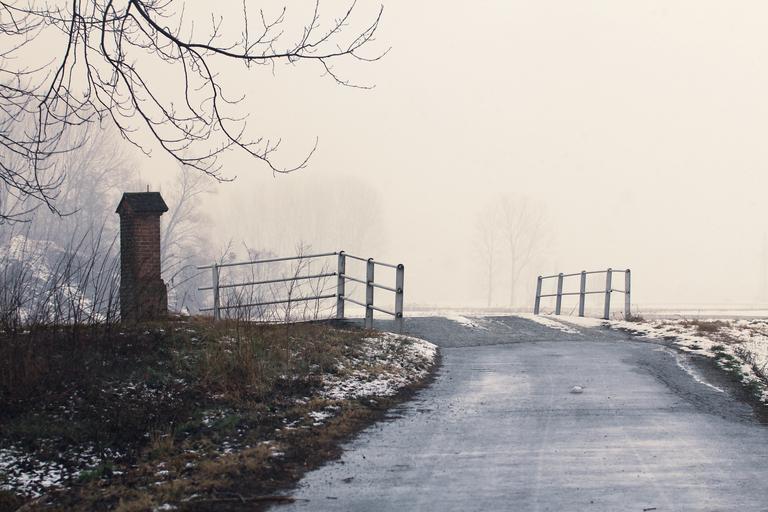 Keywords: bridge country misty fog landscape season winter cold