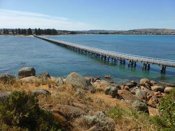 Keywords: bridge pier jetty distance shoreline seaside wooden horizon scenic rocks rocky
