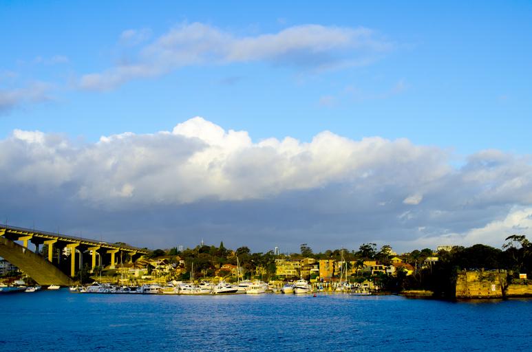 Keywords: bridge river gladesville bridge parramatta landscape clouds sky blue scenic boat gladesville sydney