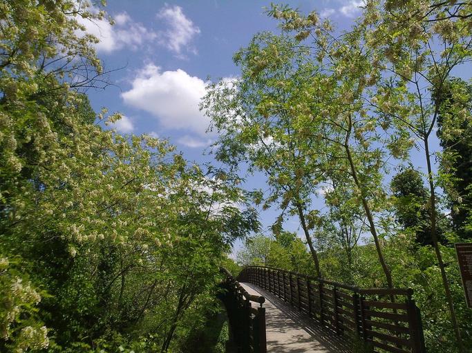Keywords: bridge river green sky clouds park the form of clouds cloud