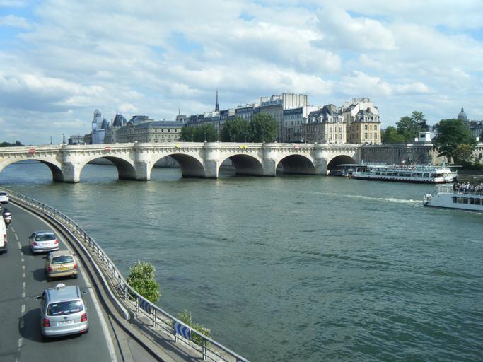 Keywords: bridge the river seine paris france river ship river transport tour tourism view panorama transport