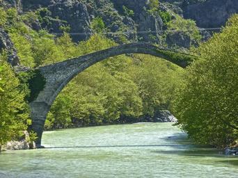 Keywords: bridge stone greece crossing historical old scenery scenic landmark mediterranean rock