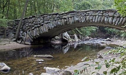 Keywords: bridge stream creek landscape rocks boulders park stones trees scenic flowing view nature