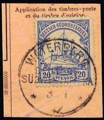 Keywords: Briefmarke waterberg.jpg ar طوابع لألمانيا الغربية جنوب أفريقيا ختم وتربيرج fa تمبر آلمانی جنوب غرب آفریقا postmarked Waterberg ur جرمنجرمن جنوبی مغربی افریقہ کے لئے ڈاک ٹکٹ Waterberg کی ڈاک کی مہر ثبت af Seëls vir die Duitse Suid-Wes-Afrika geposmerk Waterberg az Alman Cənubi West Africa Stamps Waterberg postmarked be а кі для нямецкай Паўднёва-Заходняй Аф ыкі паштовым штэмпелі Вате бе г bg Печати за ге манския Югозападна Аф ика с пощенско клеймо Вате бе г ca Segells per l' frica Sudoccidental Alemanya mata-segells Waterberg cs Známky pro Německou Jižní Západní Africe poštovním razítkem Waterberg da Frimærker til tyske Sydvestafrika poststemplet Waterberg de Briefmarke für Deutsch-Südwestafrika mit Poststempel Waterberg el Γραμματόσημα για τις γερμανικές οτιοδυτική Αφρική σφραγίδα ταχυδρομείου Waterberg en Stamps for German South West Africa postmarked Waterberg eo Po tmarkoj por germanaj South West Africa postmarked Waterberg es Sellos para el Africa Sudoccidental Alemana matasellos Waterberg et Margid Saksa Edela-Aafrika postitempli Waterberg fi Postimerkit Saksan Lounais-Afrikassa leimattu Waterberg fr Timbres pour l'Afrique du Sud-Ouest allemande cachet de la poste Waterberg gl Selos para German South West Africa selo Waterberg hi र्मन दक्षिण पश्चिम अफ्र का के लिए टिकटों Waterberg पोस्टमार्क hu Bélyeg a német Dél-nyugat-afrikai bélyegző Waterberg hr Marke za njemački Južnoj zapadnoj Africi poslana Waterberg ht Koupon pou Achte pou Alman Sid Afrik Lwès so lapòs ki date Waterberg hy Նամականիշե համա գե մանական ա ավային Ա եւմտյան Աֆ իկայում postmarked Waterberg id Perangko untuk Jerman Selatan Afrika Barat cap pos Waterberg is Frímerki fyrir þýska South West Afríka merkt Waterberg it Francobolli per il tedesco Sud Africa occidentale timbro postale Waterberg ja ドイツ南西アフリカのためのスタンプはWaterbergの消印を ka მარკების გერმა იის სამხრეთ დასავლეთ აფრიკის postmarked Waterberg ko 독 어 사우스 웨스트 아프리카 우 는 Waterberg에게 우편 소 찍 la Notat pro German meridies Occidens Africa postmarked Waterberg lt Vokietijos Pietvakarių Afrika antspaudai pašto spaudo Waterberg lv Markas Vācijas dienvidrietumu Africa pasta zīmogs Waterberg mk Поштенски ма ки за ге мански Јужна Западна Аф ика postmarked Вате бе г nl Postzegels voor Duitse Zuid-West-Afrika poststempel Waterberg no Frimerker for tysk South West Africa poststemplet Waterberg pl Znaczki na niemiecki Południowej Afryki Zachodniej stemplem Waterberg pt Selos para German South West Africa carimbo Waterberg ro Timbre pentru Germania de Sud Africa de Vest data poștei Waterberg ru а ки для немецкой Юго-Западной Аф ики почтовому штемпелю Вате бе г sk Známky pre Nemeckú Južnej Západnej Afrike poštovým razítkom Waterberg sr Печат за немачки Судвестаф икa послати Вате бе г sv Stamp för tyska Südwestafrika poststämplat Waterberg ta ெர்மன் தென் மேற்கு ஆப்பிரிக்கா முத்திரைகள் Waterberg postmarked th แสตมป์สำหรับ ยอรมันแอฟริกาตะวันตก ฉียงใต้ประทับตราไปรษณีย์ Waterberg tr Waterberg damgalanmış Alman Güney Batı Afrika için Damga uk Штамп для німецьких імецької Південно-Західній Аф иці поштовим штемпелем Вате бе г vi Tem Đức Tây Nam Phi đóng dấu bưu điện Waterberg zh 德国西南 洲的邮票邮戳为准瓦特 scan stamp / scan Briefmarke um 1900 unknown /unbekannt Philately 1901 stamps of German South-West Africa Colonialism of Germany Postmarks of area stamps of Germany PD-old