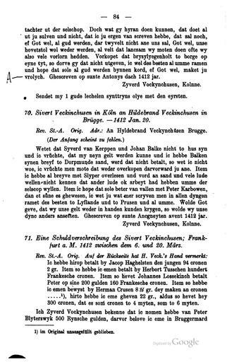 | Keywords: Briefwechsel Hildebrand Veckinchusen 084.jpg Hildebrand Veckinchusen Briefwechsel eines deutschen Kaufmanns im fünfzehnten Jahrhundert http //books google com/books 3fid 3d8chAAAAAIAAJ printsec 3dfrontcover dq 3dVeckinchusen hl 3dde century 14 Wilhelm Stieda Ed Author died more than 70 years ago - public domain PD-old Briefwechsel Hildebrand Veckinchusen |