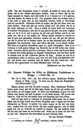 | Keywords: Briefwechsel Hildebrand Veckinchusen 151.jpg Hildebrand Veckinchusen Briefwechsel eines deutschen Kaufmanns im fünfzehnten Jahrhundert http //books google com/books 3fid 3d8chAAAAAIAAJ printsec 3dfrontcover dq 3dVeckinchusen hl 3dde century 14 Wilhelm Stieda Ed Author died more than 70 years ago - public domain PD-old Briefwechsel Hildebrand Veckinchusen |