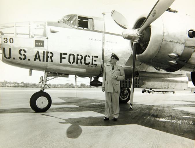 Keywords: brigadier general clarence s. s bill irvine special collection photo north american aviation northamericanaviation north american northamerican naa north american b-25 mitchell northamericanb25mitchell north american b-25 northamericanb25 north american mitchell northamericanmitchell mitchell bomber mitchellbomber b-25 mitchell b25mitchell b-25 b25 airplane vehicle aircraft Catalog #: 09_02046 Title: Brigadier General Clarence S. ""Bill"" Irvine Special Collection Photo Additional Information: Clarence S. Irvine standing in front of North American B-25 aircraft, Brigadier General Clarence Irvine enjoyed a long distinguished military career, mainly involving engineering. He served with the XXI Bomber Command (B-29's) during WWII and continued to serve throughout the 1950s and 1960s. Tags: Brigadier General Clarence S. ""Bill"" Irvine Special Collection Photo Repository: San Diego Air and Space Museum Archive Catalog #: 09_02046 Title: Brigadier General Clarence S. ""Bill"" Irvine Special Collection Photo Additional Information: Clarence S. Irvine standing in front of North American B-25 aircraft, Brigadier General Clarence Irvine enjoyed a long distinguished military career, mainly involving engineering. He served with the XXI Bomber Command (B-29's) during WWII and continued to serve throughout the 1950s and 1960s. Tags: Brigadier General Clarence S. ""Bill"" Irvine Special Collection Photo Repository: San Diego Air and Space Museum Archive