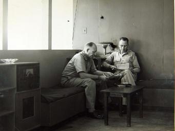 Keywords: brigadier general clarence s. s bill irvine special collection photo people indoor Catalog #: 09_01879 Title: Brigadier General Clarence S. ""Bill"" Irvine Special Collection Photo Additional Information: Clarence S. Irvine (on left) smoking cigar with unidentified man in military uniform, Brigadier General Clarence Irvine enjoyed a long distinguished military career, mainly involving engineering. He served with the XXI Bomber Command (B-29's) during WWII and continued to serve throughout the 1950s and 1960s. Tags: Brigadier General Clarence S. ""Bill"" Irvine Special Collection Photo Repository: San Diego Air and Space Museum Archive Catalog #: 09_01879 Title: Brigadier General Clarence S. ""Bill"" Irvine Special Collection Photo Additional Information: Clarence S. Irvine (on left) smoking cigar with unidentified man in military uniform, Brigadier General Clarence Irvine enjoyed a long distinguished military career, mainly involving engineering. He served with the XXI Bomber Command (B-29's) during WWII and continued to serve throughout the 1950s and 1960s. Tags: Brigadier General Clarence S. ""Bill"" Irvine Special Collection Photo Repository: San Diego Air and Space Museum Archive |