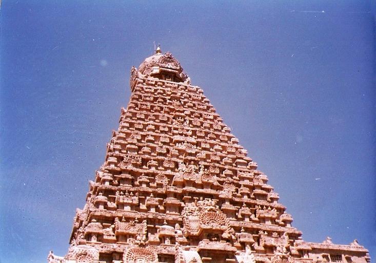 Keywords: Brihadishwara Temple Gopuram.jpg en The majestic tower of Brihadiswara Temple in Thanjavur India Own Anamika144 1987-09-14 Vimana of the Brihadisvara Temple