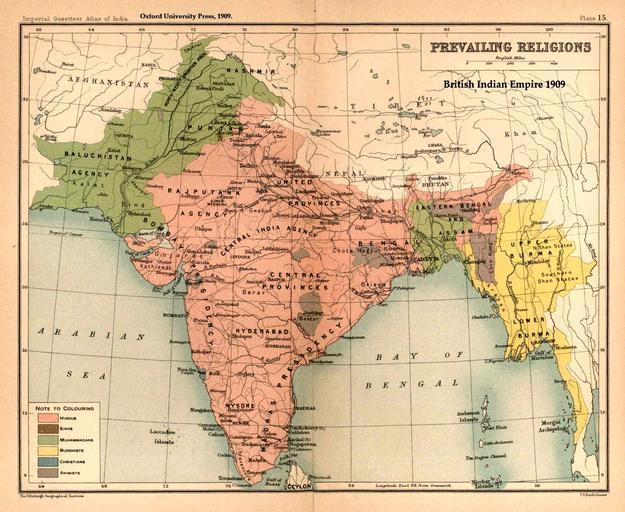 | Keywords: Brit IndianEmpireReligions3.jpg Map Prevailing Religions of the British Indian Empire 1909 <br> Key ;Pink Hindu ;Green Muslim ;Diagonal lines Sikh small area in Punjab ;Yellow Buddhist Burma and Chittagong Hill Tracts ;Blue Christian Goa ;Purple Animist several inland hilly areas Ceylon and the Andaman islands are not mapped The Imperial Gazetteer of India Oxford University Press 1909 Scanned from personal copy and annotated by me <font color B8860B >Fowler fowler</font><font color 708090 >«Talk»</font> 04 16 19 March 2007 UTC 1909 John George Bartholomew File India religion map 1909 en jpg old map 1920 original upload log page en wikipedia Brit_IndianEmpireReligions3 jpg 2007-03-19 04 16 Fowler fowler 1650×1275×8 338398 bytes <nowiki>Map Prevailing Religions of the British Indian Empire 1909 from the Imperial Gazetteer of India Oxford University Press 1909 Scanned from personal copy and annotated by me ~~~~ PD-old-75 </nowiki> The Imperial Gazetteer of India Buddhism distribution maps of India Christian distribution maps of India Hindu distribution maps of India Islam distribution maps of India Jainism distribution maps of India Judaism distribution maps of India Animism 1909 maps of India |