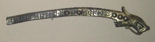 Keywords: British Museum Runic Silver Animal Head.jpg en Photograph of British Museum http //www britishmuseum org/research/search_the_collection_database/search_object_details aspx objectid 98159 1869 0610 1 2010-06-24 own BabelStone Half of a gilt silver mount terminating in the form of an animal head with blue-glass eyes Length 18 8 centimetres With a uninterpretable cryptic or magic runic inscription sbe/rædht3bcai/e/rh/ad/æbs ᛋᛒᛖ ᚱᚫᛞᚻᛏᛇᛒᚳᚪᛁ ᛖ ᚱᚻ ᚪᛞ ᚫᛒᛋ Middle Anglo-Saxon period probably late 8th century Found in the Thames near Westminster Bridge London Bibliography Page R I 1964 Appendix A The Inscriptions in D M Wilson Anglo-Saxon Ornamental Metalwork 77-9 Wilson D M 1964 Anglo-Saxon Ornamental Metalwork 700-1100 in the British Museum Catalogue of Antiquities of the Later Saxon Period I London cat 45 15-16 Wilson D M 1973 The Treasure in A Small C Thomas and D M Wilson St Ninian s Isle and its Treasure Oxford 138 pl LII b Length 18 8 centimetres G41/dc39/no28 BabelStone own 2010-06-24 cc-zero Anglo-Saxon runic inscriptions Room 41 British Museum Anglo-Saxon metalwork Animal heads in art |