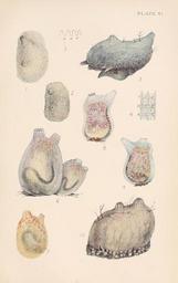 Keywords: BritishTunicataPlate11.jpg text FIGS 1 and 2 - Ascidia amoena sp nov p 116 1 Test with branchial aperture directed upwards one and a half times natural size 2 Test of another individual with branchial aperture directed downwards natural size accepted name Ascidia conchilega Müller 1776 3-5 Ascidia plebeia Alder p 117 3 Test natural size 4 Part of branchial sac magnified 5 Ocelli Highly magnified accepted name Ascidia conchilega Müller 1776 6 and 7 - Ascidia sordida A and H p 110 6 Tests of two individuals natural size 7 Mantle of another individual natural size accepted name Ascidiella aspersa Müller 1776 8 and 9 “Probably a variety of Corellia paralellogramma Views of test one half natural size 8 right side; 9 left side accepted as Corella parallelogramma Müller 1776 10 - Ascidia obliqua Alder p 124 Test natural size accepted as Ascidia obliqua Alder 1863 http //www biodiversitylibrary org/ Alder and Hancock s 1850 Joshua Alder and Albany Hancock British Tunicata Volume 1 Ascidia obliqua Category Corella parallelogramma Ascidiella aspersa Ascidia conchilega PD-old |
