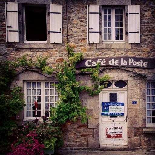Keywords: brittany finistère france home architecture past stone goal lantern shutters granite cafe facade