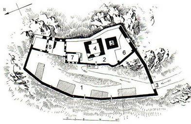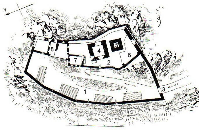 | Keywords: Brn-0087-0003.jpg en Floor plan of castle Haus Murach at Oberviechtach Upper Palatinate/Bavaria 1 outer bailey; 2 keep; 3 outer bailey's gate; 4 residential tower žgranary ; 5 donjon; 6 chapel; 7 outhouses; 8 housing unit de Grundriss von Haus Murach bei Oberviechtach Oberpfalz/Bayern 1 Vorburg; 2 Hauptburg; 3 Vorburgtor; 4 Wohnturm žGetreidekasten ; 5 Bergfried; 6 Kapelle; 7 Nebengebäude; 8 Wohnbau http //www hdbg de/burgen/burgen_suche-burgen_detail php id brn-0087 topic einzelbild bid brn-0087-0003 Georg Hager 1906 PD-old-70 Castle Murach Haus Murach on the peak of the mountain Oberpfälzer Wald Haus Murach Images from Haus der Bayerischen Geschichte |