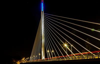 Keywords: bro natt lett belysningsutstyr blå lastebil landskapet himmel gate bil arkitektur og bygninger norge ledning rød stål lenge arkitektur langsom eksponeringstid
