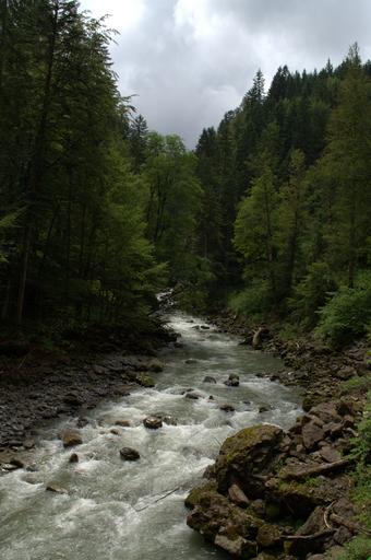 Keywords: broad brook clammy allgäu clammy broad brook kleinwalsertal river bach rock stones nature source mountains forest flow idyllic