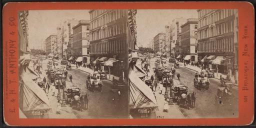 | Keywords: Broadway from Broome Street, looking up, by E. & H.T. Anthony (Firm).jpg Broadway_from_Broome_Street _looking_up _by_E _ _H T _Anthony_ Firm png Approx 72 000 stereoscopic views 10 x 18 cm or smaller Stephen A Schwarzman Building / Photography Collection Miriam and Ira D Wallach Division of Art Prints and Photographs MFY Dennis Coll 91-F184 G91F184_029F 624289 8-31-2005; updated 2-11-2009 PD-old Robert N Dennis collection of stereoscopic views Broadway | ||||