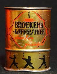 Keywords: Broekema Koffie-Thee loodje, blikken maatbekertje, foto2.JPG Very old product that is not produced and not sold any more Note that some tins may look the same but when looked for carefully there are some slight differences Photographed at a collector of Droste memorabilia and old tin cans For more info see http //www tincollectors nl/ tincollectors nl or email info tincollectors nl own 2014-02-08 11 08 30 Alf van Beem CC-Zero Trademarked Broekema