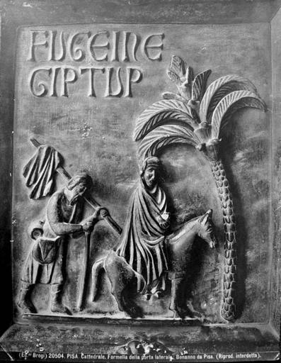 | Keywords: Brogi, Carlo (1850-1925) - n. 20504 - Pisa - Cattedrale - Formella della porta laterale - Bonanno da Pisa.jpg Carlo Brogi 1850-1925 - Pisa - Cattedrale - Formella della porta laterale - Bonanno da Pisa L'iscrizione latina FUGE IN EGYPTU<m> P fuggi in Egitto identifica l'episodio Numero di catalogo 20 504 Fusa nell'XI secolo Carlo Brogi 1850-1925 - Pisa - Cathedral - Plaque from the side door by Bonanno da Pisa Catalogue 20504 Cast in 11th century PD-old Giacomo Brogi 1822-1881 Pisa - Cattedrale - Formella della porta laterale - Bonanno da Pisa Numero di catalogo 20 504 En Giacomo Brogi 1822-1881 Pisa - Cathedral - Plaque from the</nowiki> Bonanno's door in Pisa Historical images of Pisa by Carlo Brogi 20504 Historical images of the Cathedral Pisa Doors Latin inscriptions in Pisa Duomo Reliefs of palms Reliefs of donkeys Sculptures of the Flight into Egypt |