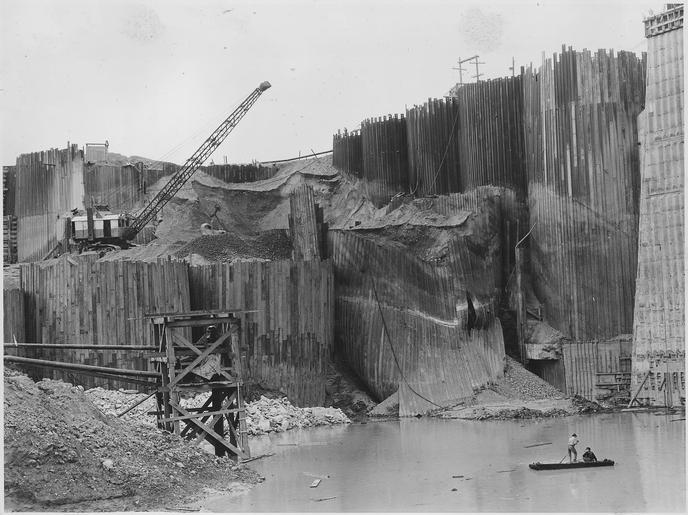 Keywords: Broken cofferdam cell F-6, which collapsed March 28 due to the removal of supporting ground outside the cell... - NARA - 294350.tif Scope and content Photograph from Volume Two of a series of photo albums documenting the construction of the Grand Coulee Dam and related work on the Columbia Basin Project General notes 294350 Local identifier Department of the Interior Bureau of Reclamation Engineering and Research Center 05/18/1981 - 03/04/1988 NARA's Rocky Mountain Region Denver NRGA Building 48 Denver Federal Center West 6th Avenue and Kipling Street Denver CO 80225-0307 1937-03-29 Record group Record Group 115 Records of the Bureau of Reclamation 1889 - 2008 Record group ARC 444 Photograph albums compiled 1903 - 1972 Series ARC 293611 File unit File unit ARC Variant control numbers NAIL Control Number NRG-115-CONSTPHO85006-COLBASIN21736 yes Other versions <gallery> File Broken cofferdam cell F-6 which collapsed March 28 due to the removal of supporting ground outside the cell - NARA - 294350 jpg jpg </gallery> NARA-cooperation PD-USGov Construction of the Grand Coulee Dam NARA TIF images with categorized JPGs |