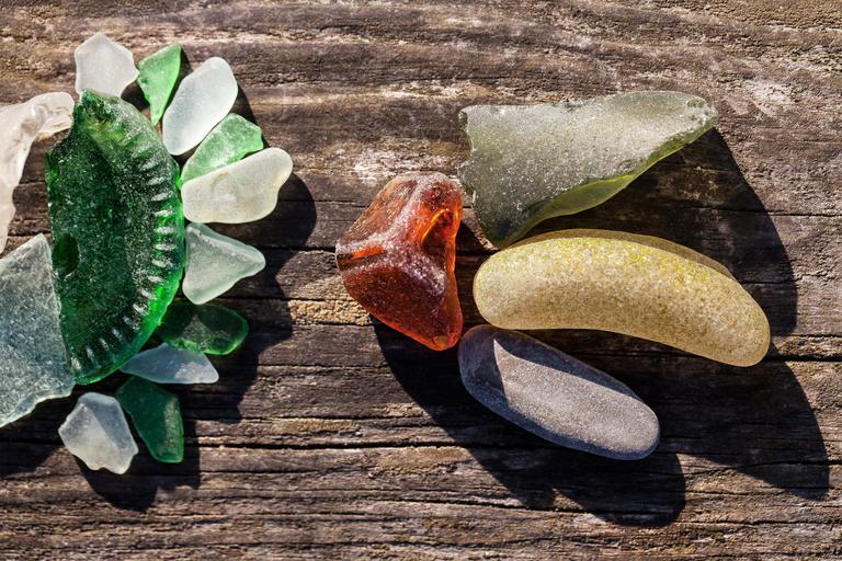 Keywords: broken glass ground stones shiny matt amorphous solids roughed up yellowish white turquoise shard background form