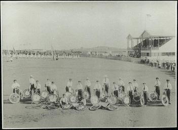 | Keywords: archives state records nsw staterecordsnsw newsouthwales blackandwhite school children broken hill brokenhill bicycle photo border text outdoor black and white Title: Broken Hill Public School - student display - bicycles Dated: c. 31/12/1904 Digital ID: 15051_a047_001851 Rights: No known copyright restrictions www.records.nsw.gov.au/about-us/rights-and-permissions We'd love to hear from you if you use our photos/documents. Many other photos in our collection are available to view and browse on our website using Photo Investigator. Title: Broken Hill Public School - student display - bicycles Dated: c. 31/12/1904 Digital ID: 15051_a047_001851 Rights: No known copyright restrictions www.records.nsw.gov.au/about-us/rights-and-permissions We'd love to hear from you if you use our photos/documents. Many other photos in our collection are available to view and browse on our website using Photo Investigator. |